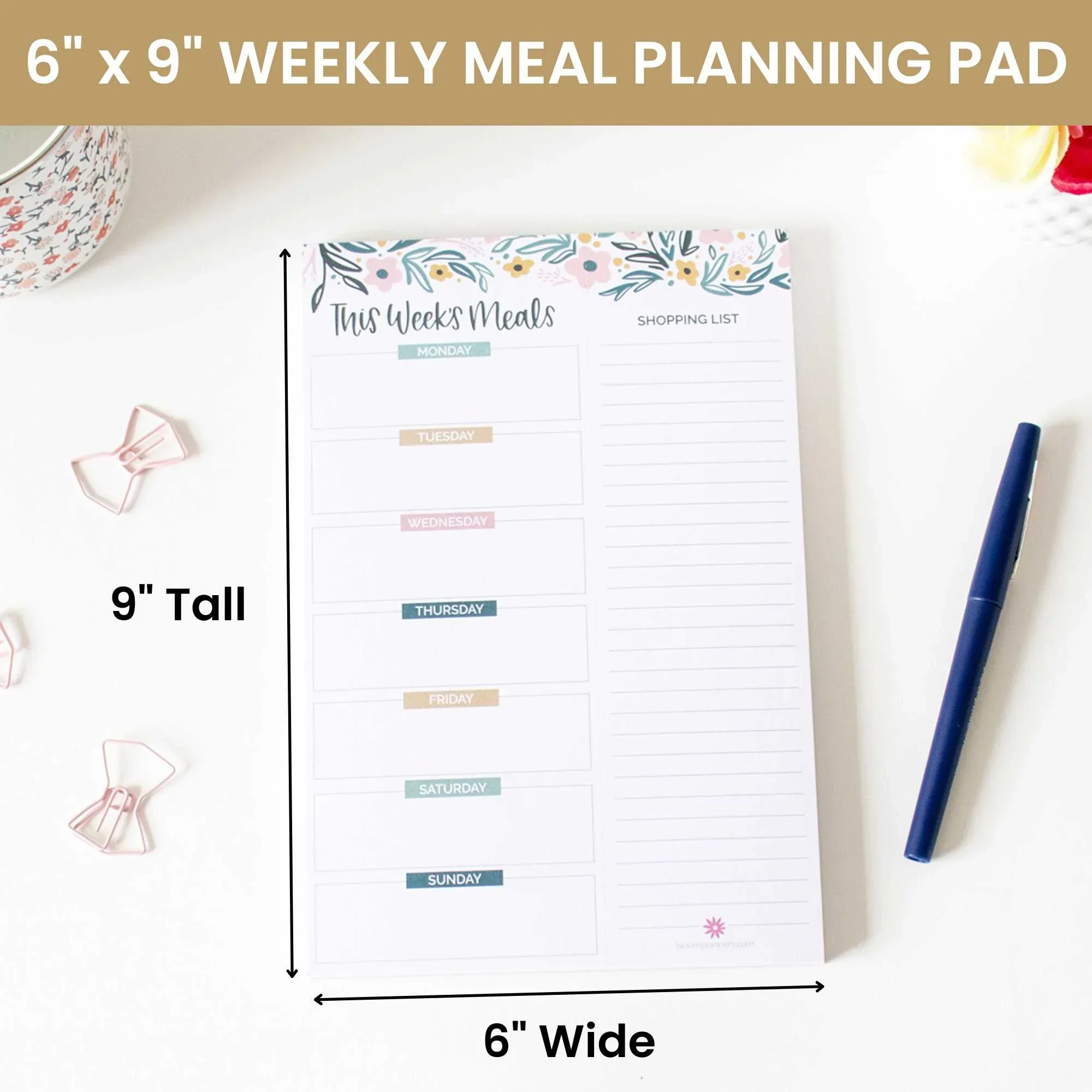 Planning Pad, 6" x 9", Meal Planning Pad with Magnets, Garden Blooms