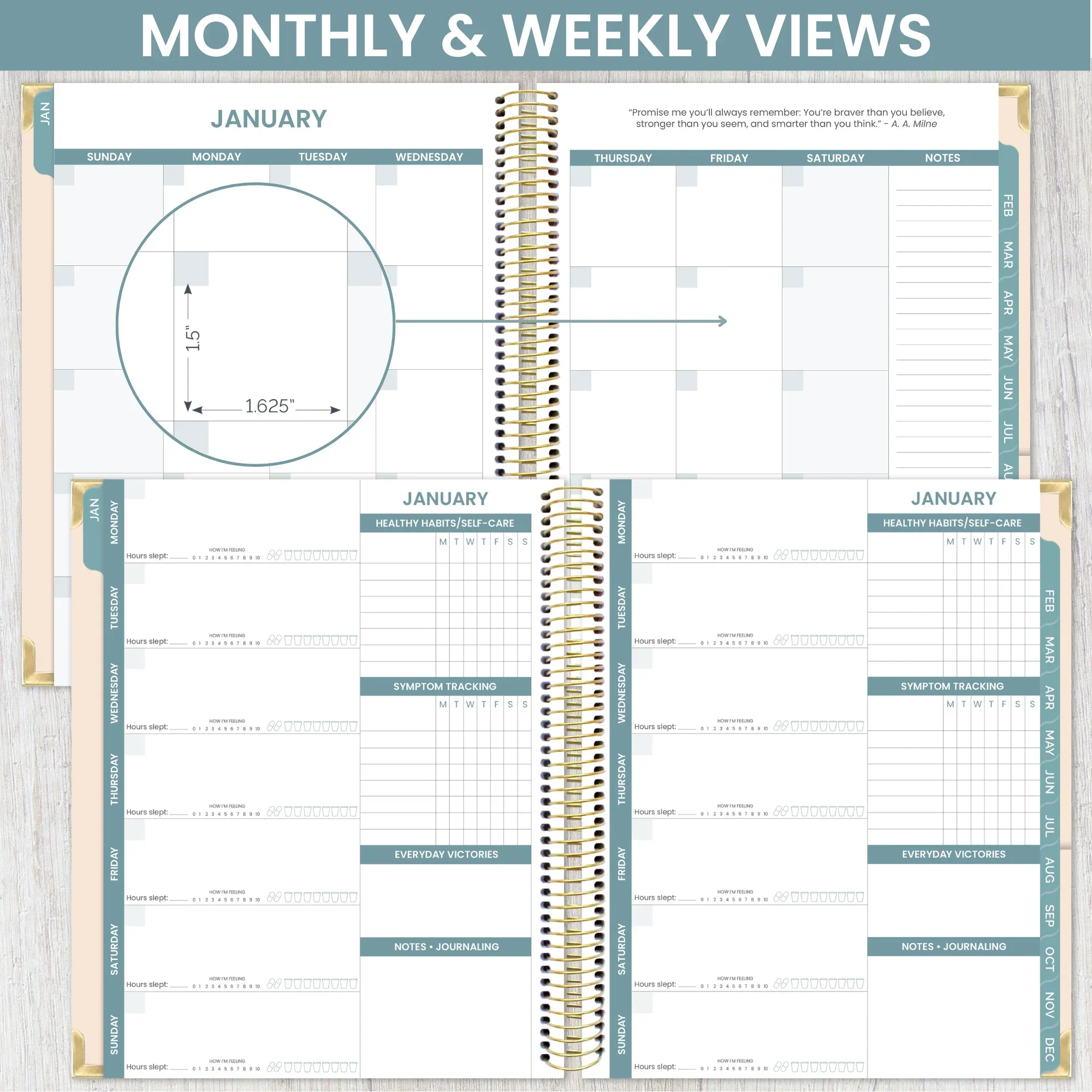 We created the Chronic Illness Planner so you can live a more empowered, hopeful, and organized year. Carry it to appointments, use it to mark health milestones, and let it lift your spirits whenever needed. We’re certain you’ll sense the hope, compassion, and resilience built into every section. This is more than a tool, it's your supportive companion during every season of your health journey.