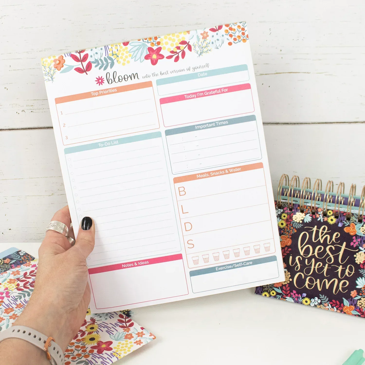 Planning Pad, 8.5" x 11", Daily Planning System, Floral Dots