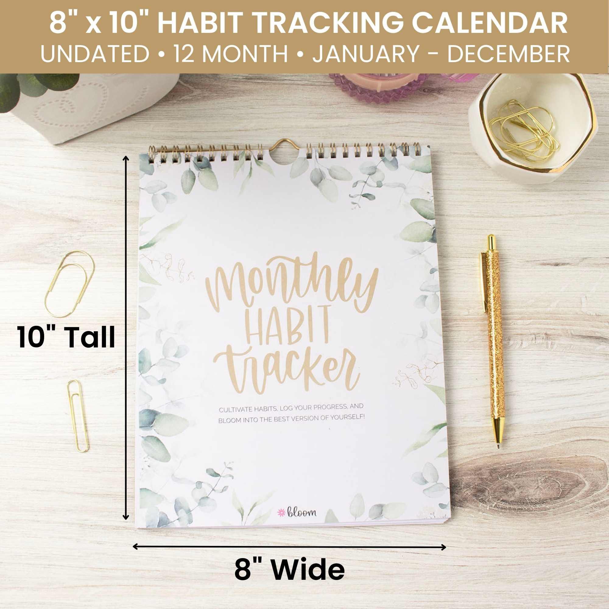 Cultivate new habits, log your progress, and bloom into the best version of yourself with bloom’s Habit Tracking Calendar! This beautiful calendar runs 12 months, January through December, but is undated so you can start using it whenever inspiration strikes. It is 8” wide x 10” wide with premium features like it’s gold metal hanger and extra thick, bright white 120gsm paper. Each monthly page has space to keep track of 8 daily (or frequent) habits, 4 weekly habits, 4 monthly habits, and has an inspirational quote. Feeling stuck? The front section includes ideas for daily, weekly, and monthly habits to start tracking.