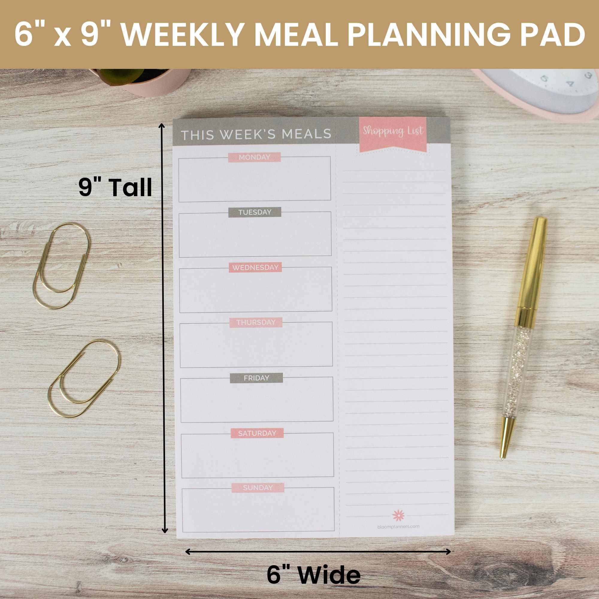 Planning Pad, 6" x 9", Meal Planning Pad with Magnets, Pink & Grey