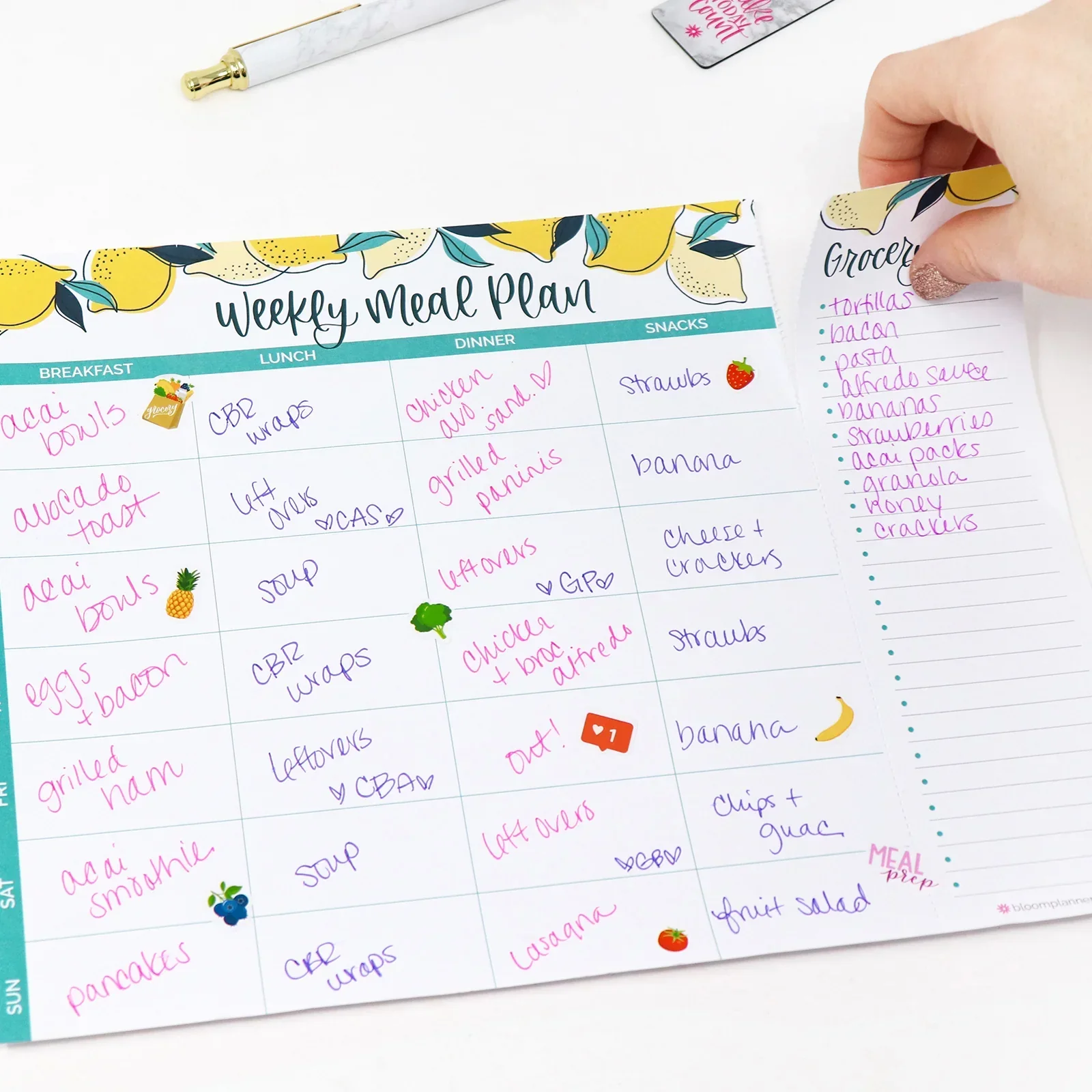 Did you know Americans routinely throw away 25% of their groceries, costing a family of four somewhere around $1,400 to $2,300 per year?! Meal planning is proven to save you time & money, plus be much better for your health. Our meal planning pad guides you through the overwhelming process of weekly meal planning, mapping out all of your meals, snacks, and grocery needs for the week ahead.
