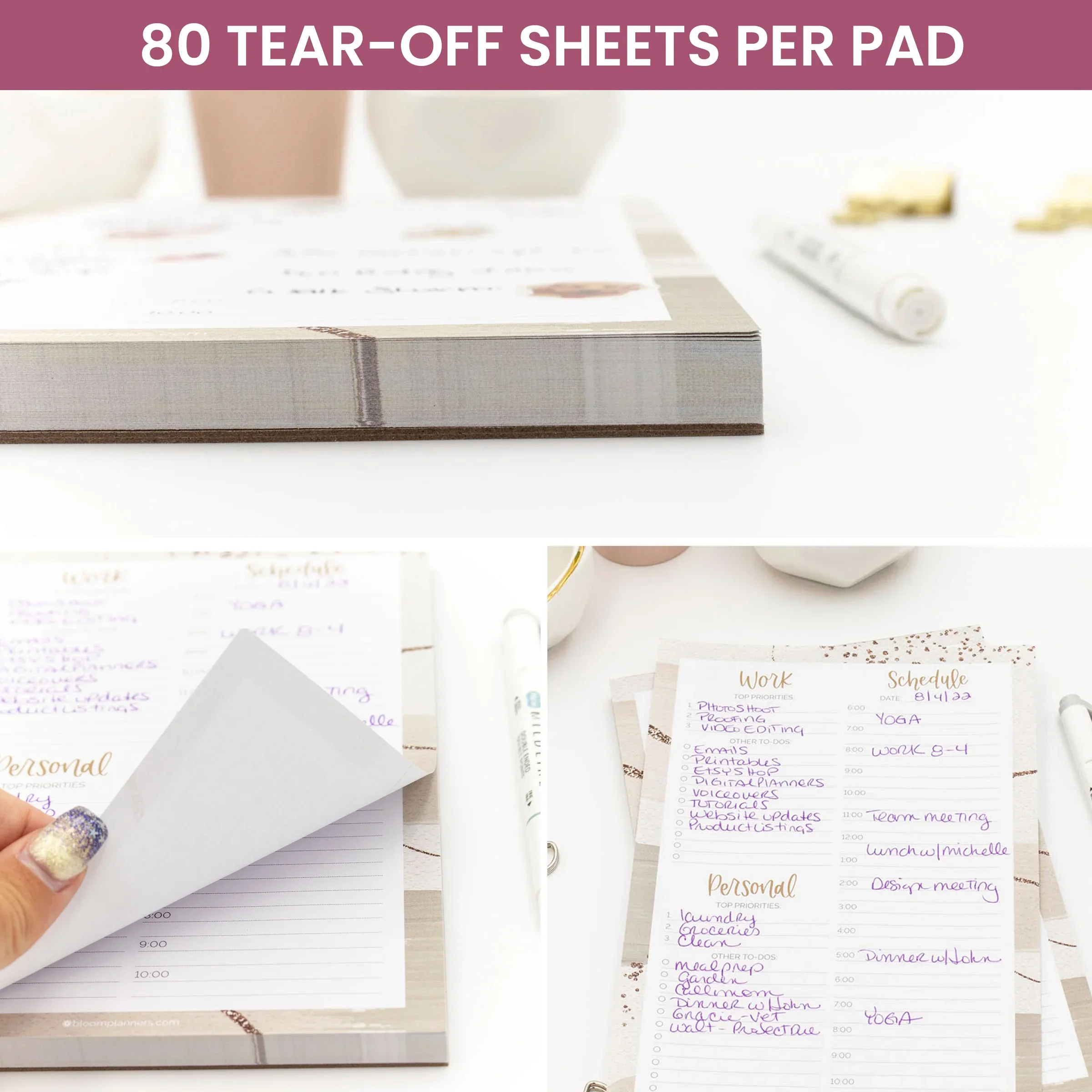 Struggling to find that elusive work/life balance? bloom’s new pad is here to help! This pad helps you visually separate out your work and personal priorities and to-dos in the left-hand column, plus map out your daily schedule from 6am-10pm in the right-hand column. This pad was intended to be used daily and promotes balance by allowing you to visually see where you are spending most of your time. These pads are 6” wide x 9" tall with 80 tear off sheets of bright white 100gsm paper.