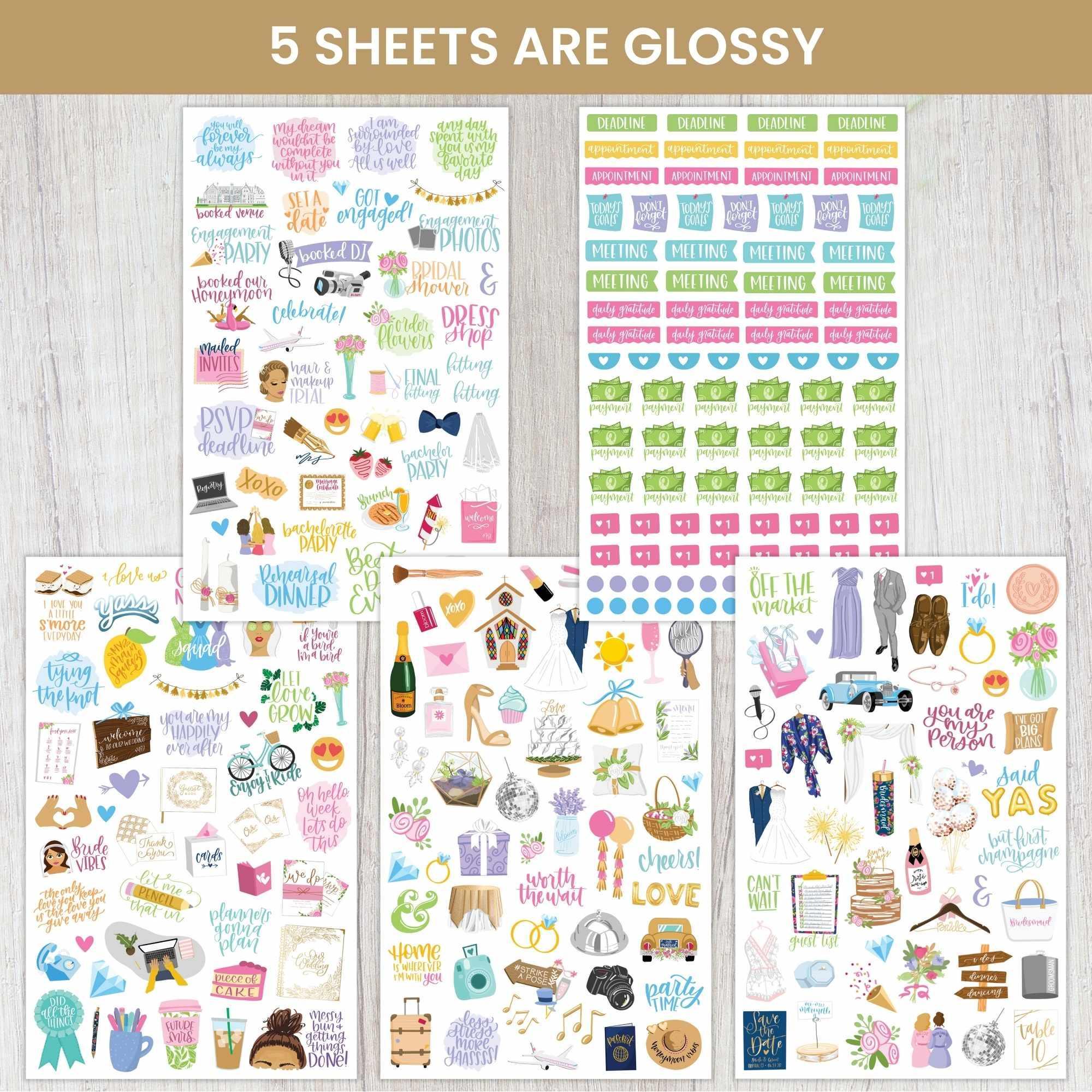 Our revamped Wedding Planning Stickers are perfect for brides-to-be! Specifications & features include: