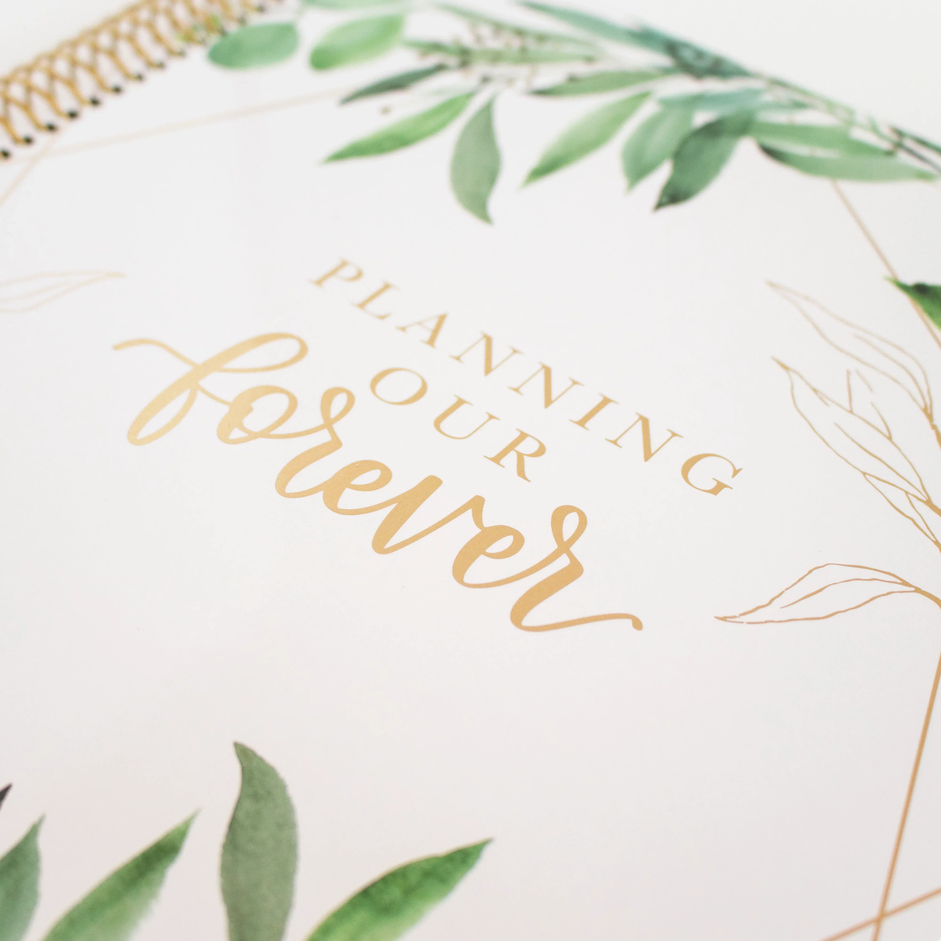 - 9” x 11” hard cover Wedding Planner with gold foil, gold reinforced metal corners, and gold single coil metal binding, allowing your planner to lay flat on your desk